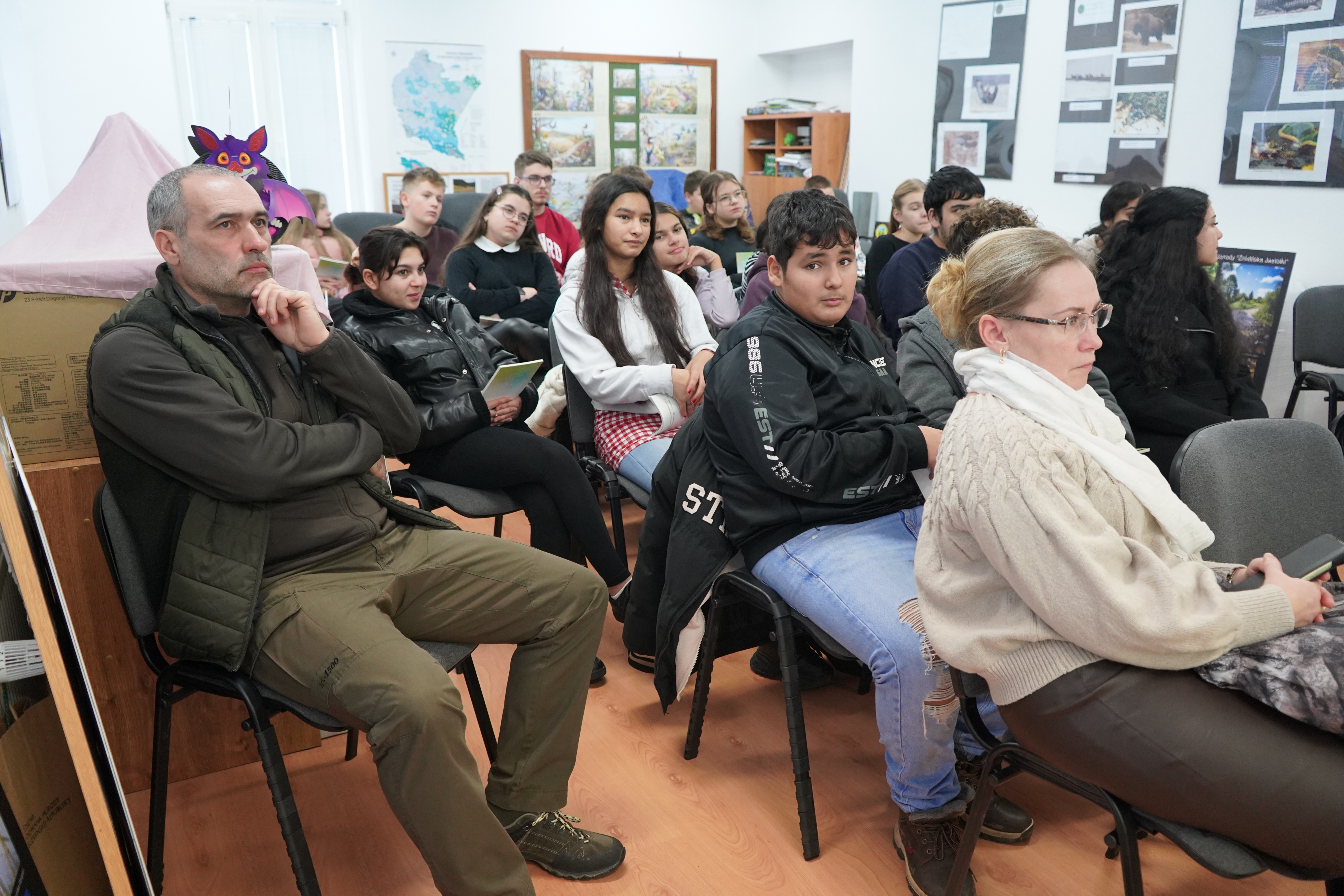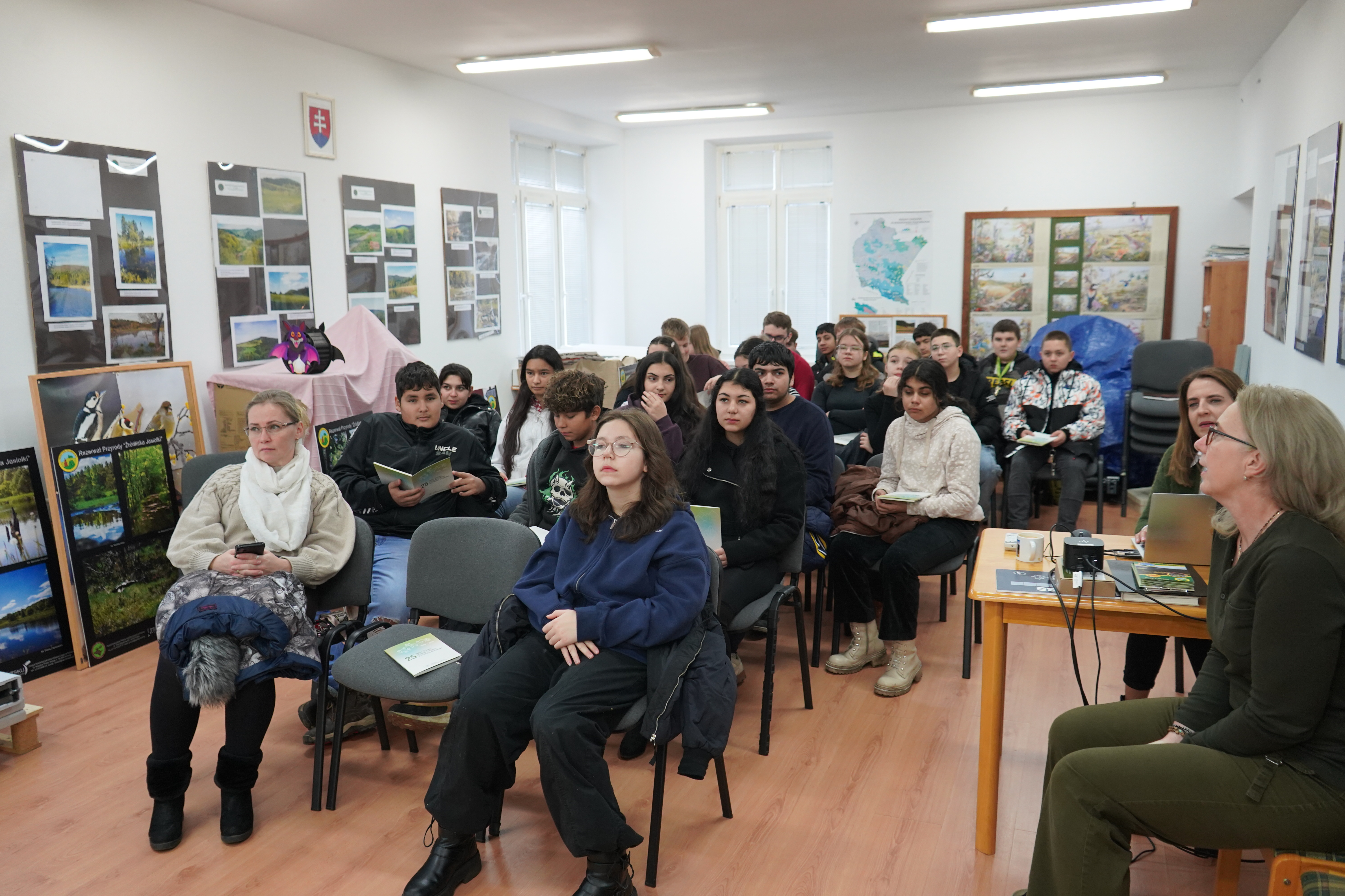 Realizując plan współpracy pomiędzy Zespołem Karpackich Parków Krajobrazowych w Krośnie a, CHKO Vychodne Karpaty pracownicy ZKPK w Krośnie w dniu 10 grudnia 2025r. w siedzibie CHKO Vychodne Karpaty przeprowadzili zajęcia edukacyjne dla 25 uczniów Szkoły Podstawowej w Medzilaborcach. W trakcie zajęć przedstawiono prezentację 5 parków wchodzących w skład Zespołu Karpackich Parków Krajobrazowych. Przedstawiono ich położenie, rok utworzenia, rezerwaty i pomniki przyrody na terenie parków, działania edukacyjne, walory przyrodnicze, krajobrazowe, turystyczne, historyczne, faunę i florę parków. Dodatkowo przedstawiono diaporamę promującą ekspozycję przyrodniczą w Zespole Karpackich Parków Krajobrazowych w Krośnie oraz udostępniono wystawę fotograficzną promującą rezerwat przyrody Źródliska Jasiołki. Uczniom i opiekunom biorącym udział w prezentacji rozdano materiały promocyjne ZKPK w Krośnie. Prezentacja cieszyła się bardzo dużym zainteresowaniem uczniów. W trakcie zajęć uczniowie mieli okazję zapoznać się z wystawą fotograficzną ZKPK w Krośnie, która jest udostępniona w siedzibie CHKO Vychodne Karpaty w Medzilaborcach.